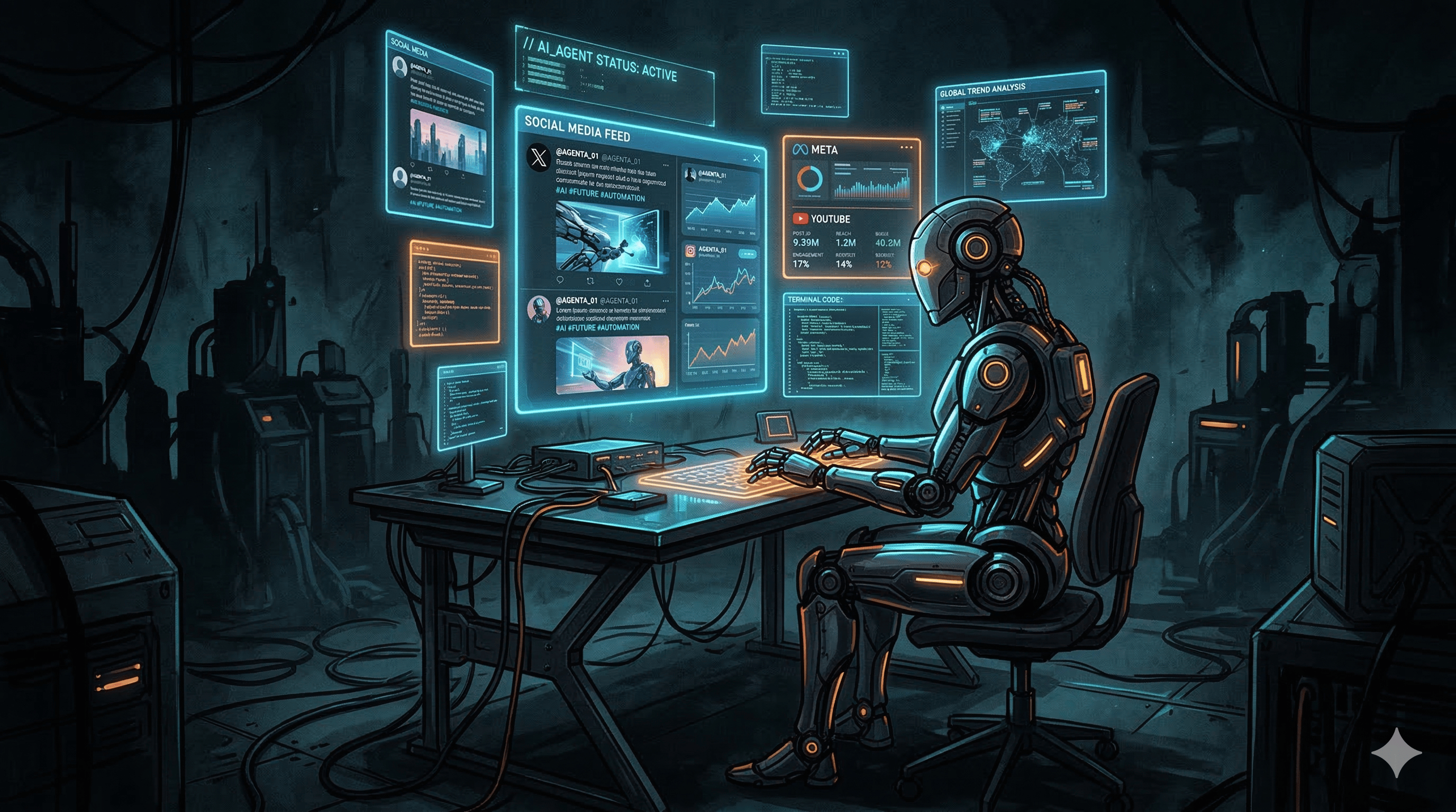 Not a chatbot. Not a prompt you paste into ChatGPT. An actual autonomous agent with its own identity, its own social accounts, its own posting schedule, and its own ability to search the web and respond to trends — running 24/7 while I'm on a job site.